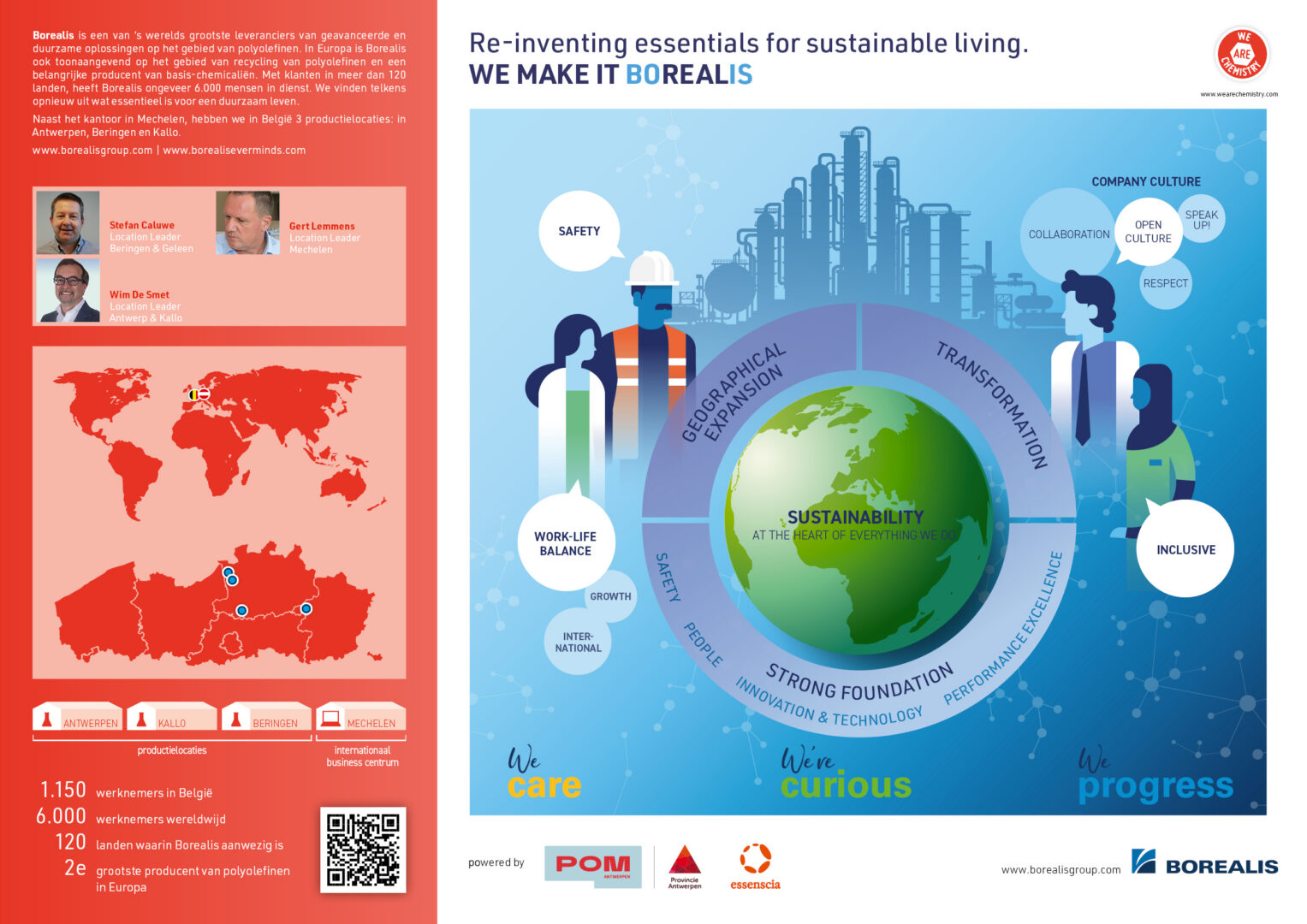 Borealis has three production sites in Belgium, in Beringen, Kallo and Zwijndrecht and an international business center in Mechelen. In total approximately 1200 employees are working in these locations.